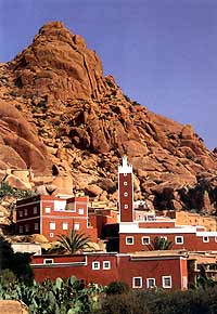 Begin! With the pink flamingos on in bewilderment a wind surfer skims over the surface of the water in a flash of colour that stands out in vivid contrast against the blue of the sea and the sky. Children play happily, building castles in the sand. Holidaymakers lie contentedly in the sun, putting the finishing touches to their tan while others stroll along the shore. A game of volleyball gets under way... To the gentle lapping rhythm of the waves, your skin deliciously caressed by a warming sun, your relax on a chaise longue with your hands buried in the warm sand, idly watching everything happening on the beach and reflect with a smile, "How delightful it is to do nothing in the middle of all this activity." In 1505 the tiny village of Agadir made its first mark on history. The Portuguese set up a trading post there, defended by the Santa Cruz fortress on Cap de Gué. A profitable, but brief stay. In 1541 they were ejected by the founder of the Saadian dynasty, Mohamed Echeikh el Mehdi. The Golden Age of Agadir then followed, with ships arriving every day to take on cargoes of sugar cane, dates, wax, oils, spices and gold. But over the years Agadir went into decline until, in 1960, it was destroyed by an earthquake. "If it was Agadir's destiny to be destroyed, its reconstruction will depend on our faith and our determination", declared the late Mohamed V, King of Morocco. So here is the new Agadir, the holiday capital! Constructed away from the areas at risk, using anti-seismic techniques, Agadir is an engaging town, the dominant white of its sculptural buildings contrasted with the multi-coloured flowers that adorn its tranquil gardens. There is an ultra-modern airport, an imposing central post office and primary school and the monumental courthouse. Near the mosque, the holidaymakers drink in the sea air, sitting at tables on the cafés terraces or strolling around the bazaars. While a little further away there is all the bustling activity surrounding the most important fishing port in Morocco, with its fleet of spruce trawlers bobbing up and down on the Atlantic swell. Take a deep breath, fill your lungs with the pure, salty air, let the energy flow through you and... go for it! Head out towards the horizon under full sail, leap onto a thoroughbred and gallop across the beach at full speed, ride the breakers on a surf board, climb into the sky with a parachute over the water or drive beneath it to admire the richly varied submarine life and finish in style on one of the most beautiful golf courses in Morocco, with a birdie at the 18th hole. Or you might prefer to go deep sea fishing off Cap Ghir and catch a tunafish, or win a set on one of the 150 tennis courts before taking a dive into one of the towns' many swimming pools... In Agadir, sportsmen (and women) feel they are in heaven. An invitation to discovery: A succession of breathtaking landscapes. Awesome waterfalls, the mauve sky at sunset, unspoiled beaches stretching as far as the eye can see... Towns with a magic that seems to belong to another age. Strangely different peoples, tribes with traditions rooted in history... From the High Atlas to the plain of Souss and the Anti-Atlas, and all along the Atlantic coast: the roads from Agadir will take you towards fascinating, exciting experiences - and a welcome that will be quite unforgettable. The adventure begins 12 km North East of Agadir, on the Imouzzer road in the country of the Ida Ou Tanane Berber tribes. Suddenly, with a view over an incredibly beautiful palm grove you come upon a bare landscape, bearing the scars of mighty geological upheaval. And there stands Imouzzer, the town of white houses. Gateway to the Deep South The