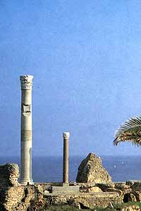 Overview Beneath the layers of time various manifestations of Carthage can be found. The first Carthage, founded by the Phoenician princess Elyssa-Dido, brought Africa to the forefront of history. The Punic Carthage of Hannon was queen of the seas and Hannibal's Carthage ruled the world during its shining hour of glory before it, too, vanished. Augustus built Roman Carthage as the capital of Proconsular African and the Imperial Carthage which followed was a centre for the arts and learning. The Christian city of St Augustine was as famed for religion as for its other interests. For a century the city was held by the Vandals and then became Byzantine under Belisarius. Carthage was finally conquered by the Arabs who then abandoned it in favour of Tunis. However, it remained a watchful outpost of the new capital city. Throughout the centuries this extinct city has been inexorably pillaged as a source of building materials for Tunis and other Mediterranean towns. It has gradually been transformed into an agricultural centre famed for the quality of its produce. The installation of the French Protectorate over the Tunisian Regency enabled the Catholic Church to restore the splendid bisphoric of Saint Cyprien. The massive Basilica rising from the summit of Mount Bysra, known as the hill of Saint Louis, is evidence of this era which has disappeared since the country's independent status. Aware of the importance of this legacy, modern Tunisia has resisted the temptation to watch Carthage disappear forever beneath a housing estate. Not all of the site has been built on, and a large archaeological zone is being set aside and protected as a national park. The Carthage which has endured throughout history has always been sited on a peninsula which advances from the African continent into the Mediterranean basin. Each city was located fronting the shoreline, then expanded towards the hills in the hinterland. They are united, complete and superimposed on each other, of the ancient Carthage and the modern city echoing with the splendors and tribulations of its glorious 3000-year history. The Wide-Angle View One need only climb to the summit of Mount Byrsa to have an ideal point for observation and for conjuring up the drama of such a long history. From this point the visitor is able to contemplate a vast panorama and on foot can explore the remains of these civilizations, including a Punic quarter beneath the remain of a Roman forum, a Christian basilica and, in the premises of a former seminary, the museum where archaeological relics unearthed from excavations in the ruins a century ago are preserved and exhibited. First of all, let's look at the horizon from the panoramic viewing point on the terrace. To the south-east in the distance a high range of mountains can be seen, against the horizon, with Tunis on one of the slopes. The suburbs of Tunis stretch as far as la Behira, an enormous salt lake which laps the shores of the Carthaginian peninsula. Beyond it lies the la Soukra plain, an area of gardens and greenery close to the airport. On the other side of la Behira, to the left, on a long, narrow strip of land is the La Goulette development, the foremost port in Tunisia. The Sidi Bou Said promontory dominates the entrance to the port, while the port of La Goulette itself is situated at the end with, in the background, the Boukornine mountain. The history of Tunisia has been made along these shores for three thousand years - Phoenicians, Punics, Romans, Vandals, Byzantines, Arabs and Muslims, Crusaders, Spaniards, Turks and French like so many waves breaking on the shore throughout the never-ending cycle of the years. The Carthage Area From the summit of Mount Byrsa, you can look along the peninsula horizon to the La Goulette conurbation; Le Kram is followed by the Salammbo district, where the two ancient harbours lie opposite each other, surrounded by trees and buildings. Further to the right is the old village of Douar Chott, built around simple ancient mosque. Further to the right, an enormous archaeological site dotted with monuments including the circus and amphitheatre can be seen. To the left, from the eastern slope of the hill as far as the shore is the residential district of Dermech. At the center of this suburb composed of gardens and villas some plots of land have been left undeveloped, and recent excavations have revealed several groups of remains such as those of a basilica and its precincts at the foot of the hill, and a Punic quarter at the edge of the sea. Further north, along the coast, are the remains of the Antonine thermal baths, which were among the most imposing in the whole Roman Empire. A large granite column which has been re-erected gives an idea of the height of the whole structure. Several centuries of neglect have not succeeded in lessening the impact of its former splendour. From the baths, the coastline rises and becomes steeper, culminating in the majestic Cap Carthage - Sidi Bou Said. The presidential palace is now located on the southern slope of Borj Jedid hill, which overlooks the thermal baths. At the top of the hill are the large water tanks which fed the baths. Further on, dominating the red ravine at Amilcar is the Basilica of Saint Cyprien. Halfway down this ravine can be found other large reservoirs which dammed up a spring at Dar Samiet, whilst the white village of Sidi Bou Said is sited high on the promontory. Facing Byrsa's twin hill of mount Junon to the west is the Odeon plateau. The theatre covers the southern slope and the Odeon crowns the summit. An entire settlement of Roman villas, some partly excavated, covers this area. The most notable of these villas, called the 'villa de la Volière', is well worth a visit for the manner in which the buildings are positioned around the courtyard colonnade, and the terrace which has a marvellous view out over the Gulf and peninsula. Below the plateau to the north-west, in the fold of a valley surrounded by fie