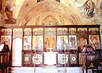 The church itself dates to 1790 and possesses an iconostasis of wood as well as a collection of beautiful icons, mostly from the 19th century. The frescoes covering the walls and vaults were completed in 1971-72 by painters sent from Rumania. | ||