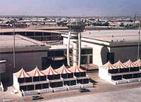 traffic congestion, and its car park can accommodate 3,000 vehicles. The 350-meter-long viaduct ramp and flyover, which was built by Dubai's Al Naboodah Construction, prevents traffic congestion by providing direct access to the site. It can accommodate 1,000 vehicles an hour. Two fully air-conditioned exhibition halls, the West Hall and East Hall, can be subdivided to host smaller events. The halls, designed as large independent squares, have a height clearance of 11.5 meters. The main halls are complemented by 3,000 square meters of ground floor facilities including first aid centers, a mosque, restaurants and administration offices, along with 3,600 square meters of VIP and press facilities. The site also includes an outdoor static display area. Between airshows, the two main halls at the exhibition center are used for a wide variety of trade fairs and other special events, all of which help to attract business and leisure visitors to Dubai. The Dubai Shopping Festival, Dubai Summer Surprises and Ramadan festivities are just some of the annual events earmarked for Airport Expo Dubai. The site has also been chosen to host conferences for IBM, the Inter Airport Middle East Exhibition and the Hotel 2000 Exhibition. |