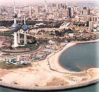 State-of-the-art government hospitals have over 4400 beds. Kuwait at a Glance Location: Kuwait lies at the north western part of the Arabian Gulf which also borders it from the east. Kuwait is also bordered by Saudi Arabia from the south west, and Iraq from the north. As a result of its location, it is considered an access point to the north-eastern of Arabia. Area: 17,818 sq.km. Climate: Kuwait's climate is characterised by a long hot dry summer, and a short warm winter with intermittent rain. Population: 2,152,775 according to estimates of June 30, 1997, of whom 745,189 are Kuwaitis. National Day: February 25. Liberation Day: February 26. Religion: Islam. Language: Arabic. Capital: Kuwait City. Time: 3 hours ahead of GMT. Currency: Kuwaiti Dinar. Flag: Three horizontal bands, green at the top, white in the centre and red at the base, with a black section linking the three colours on the proximal side. |