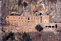 1695. The gorge is best explored on foot. A narrow vehicular road descends to the bottom, but it is more fun to take one of the paths from the villages of Tourza, Blawza, Hadchit, Hasroun and Diman. The Qadisha River, whose source is the Qadisha Grotto, runs through the valley, continuing down to Tripoli where it becomes the Abu Ali River. On the old road between the Cedars and Bsharre is the Qadisha is the Qadisha Grotto, where water thunders down from snow-fed springs. A sign marks the spot where you take a footpath from the roadside to the cave, a walk of about ten minutes. The cave is lighted to show its limestone formations, but the rushing water and cool temperatures are the main attractions here. Below the cave is a powerful waterfall, especially full in spring months. Closed during the winter, in summer this is the site of an outdoor restaurant and cafe. |